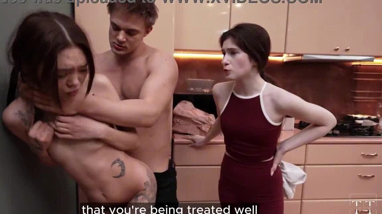 Skinny Pigtails Step-Daughter and Step-Mom in Taboo FFM 3some Casting with Stranger Guy