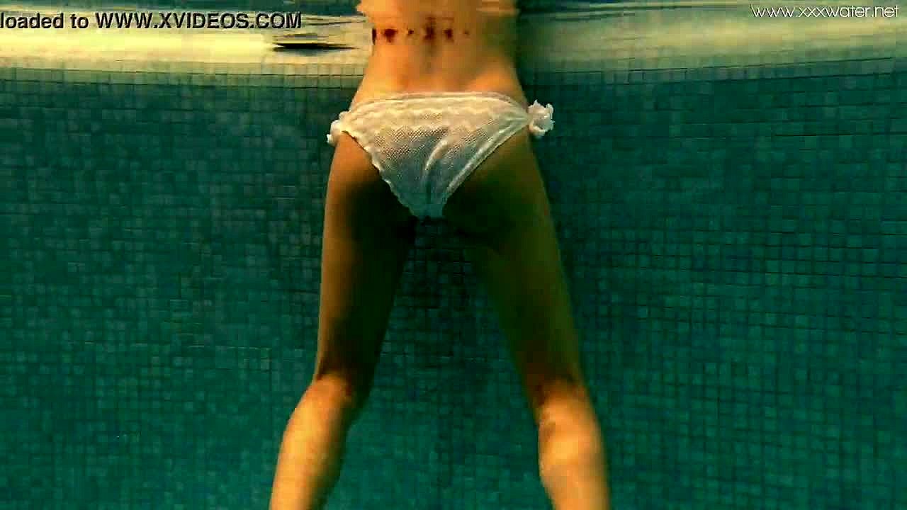 Hot Hungarian teen Lana swims nude in the pool, showing her juicy ass underwater.