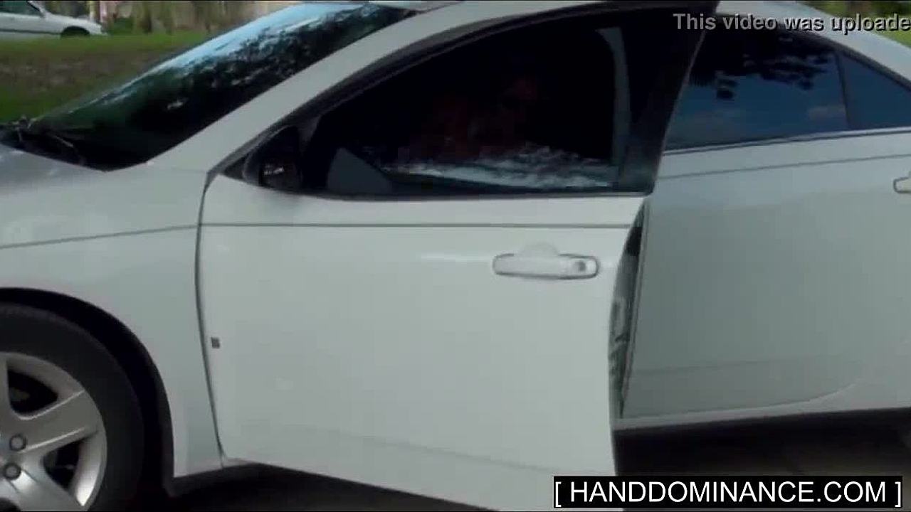 the aunty gives a nice handjob to her boyfriend's cock outdoors. it's an amateur scene with long hair and beautiful tits.