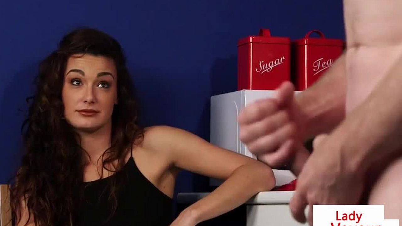 British Voyeurs Film and HUMILIATE Guy on Sofa in CFNM Scene